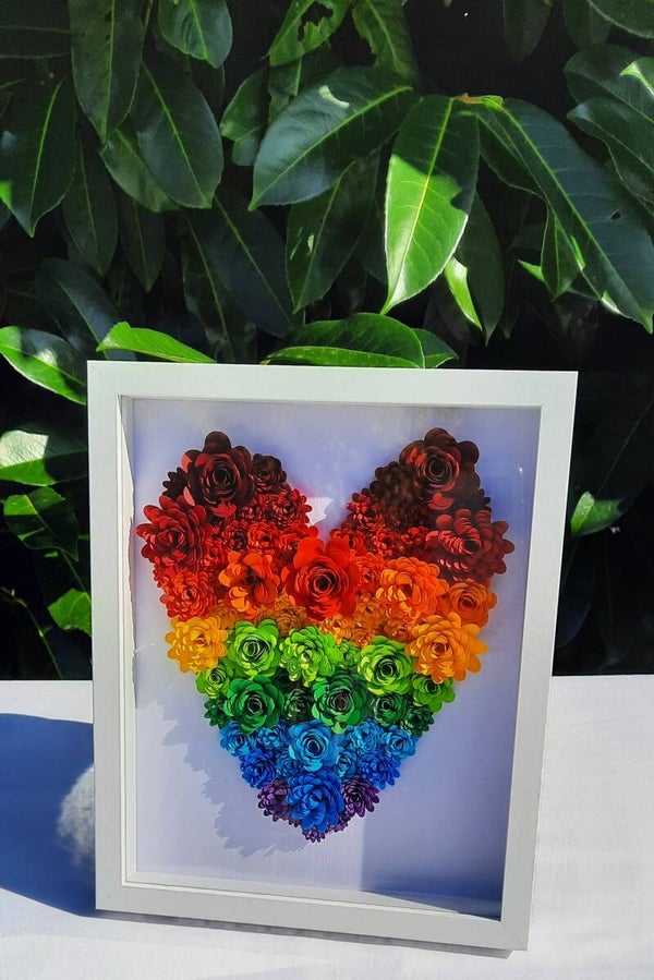 Le cadre peut être personnalisé avec un prénom ou une phrase. Vous pouvez choisir les couleurs des fleurs. Il vous faudra remplir le champ concerné.